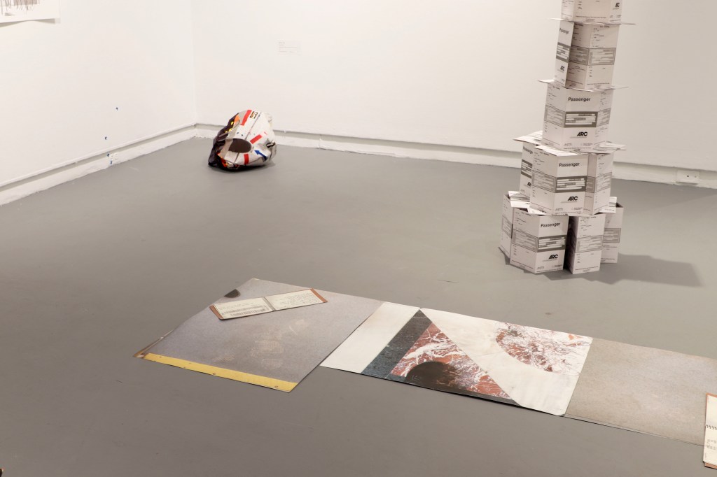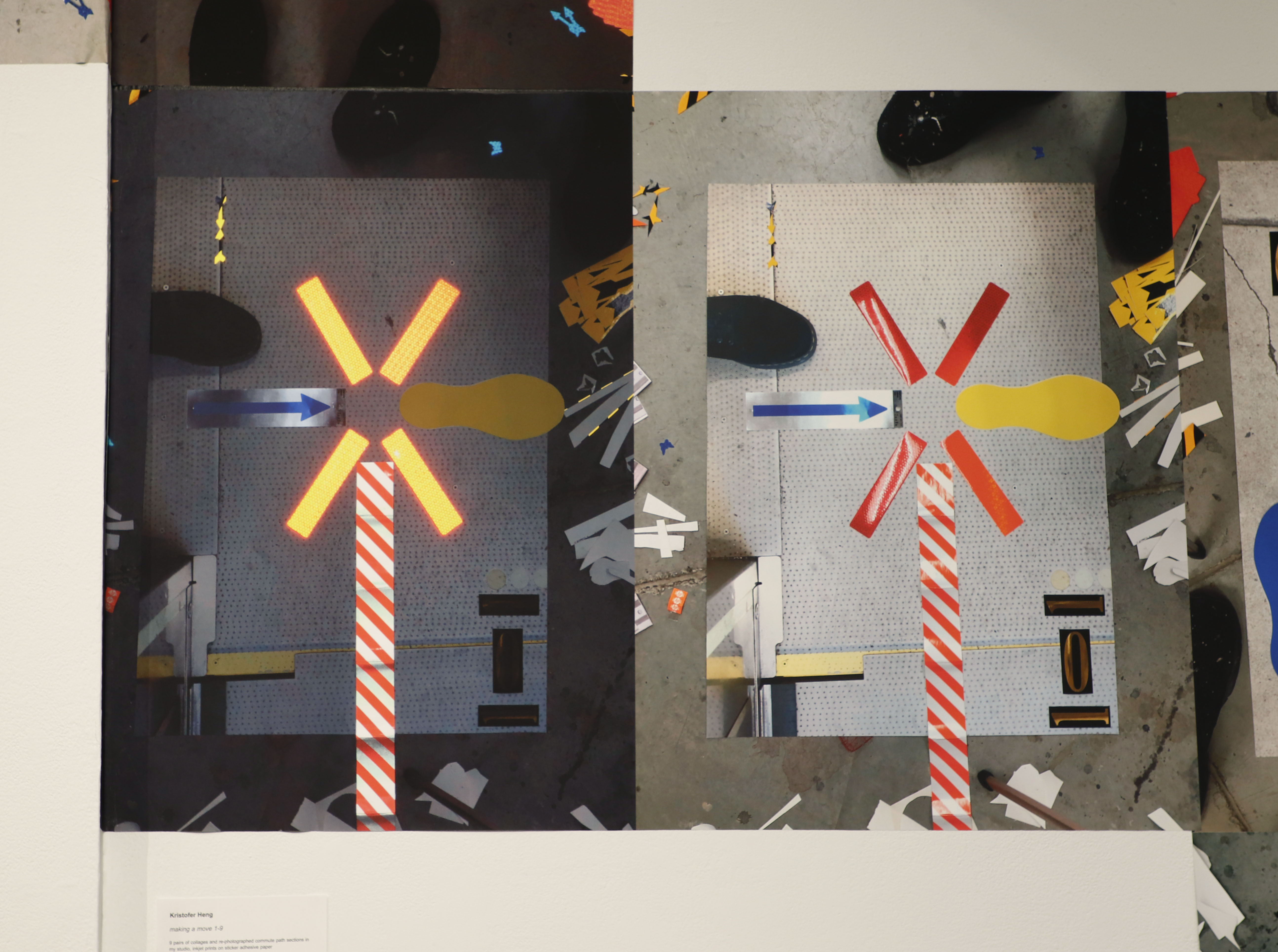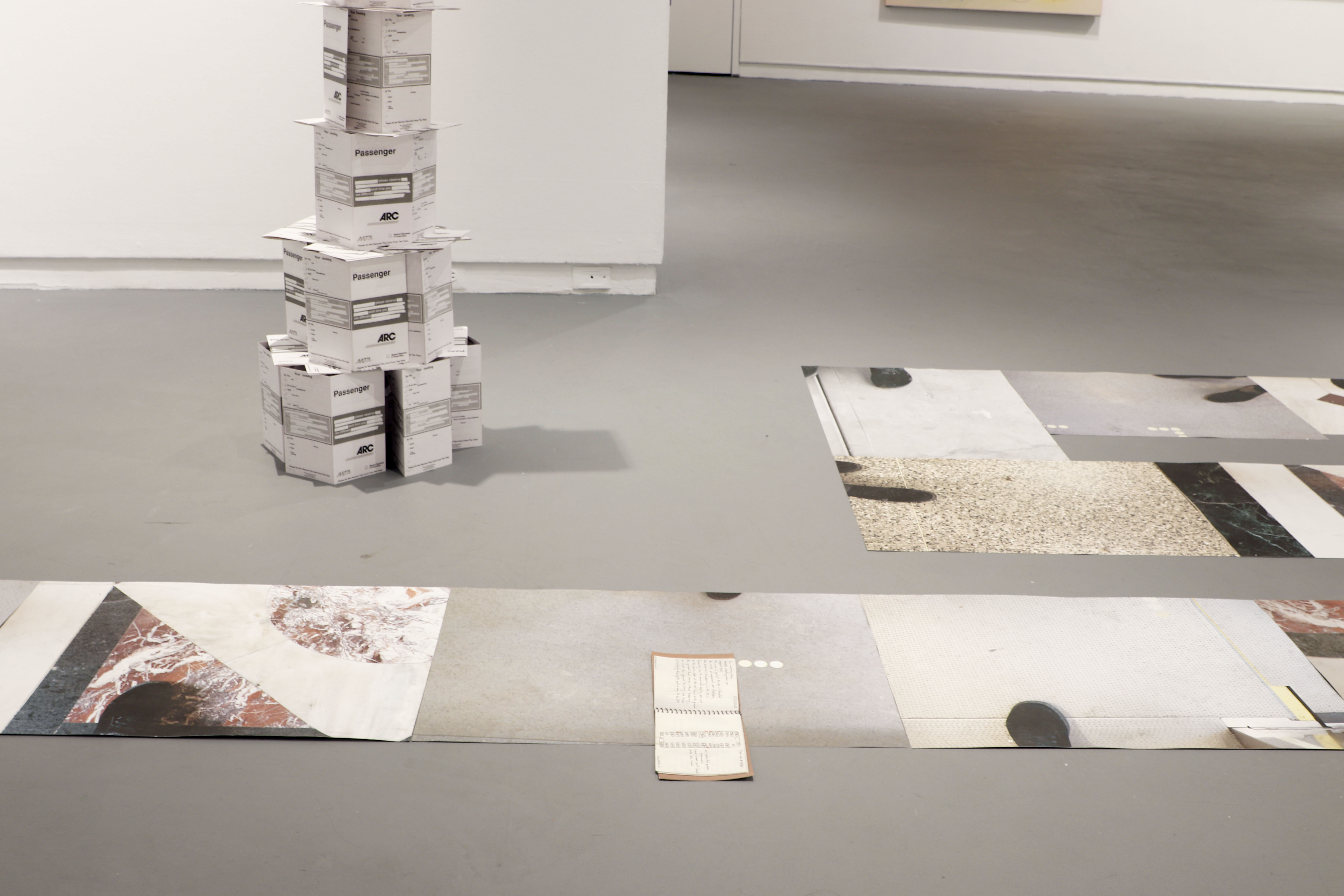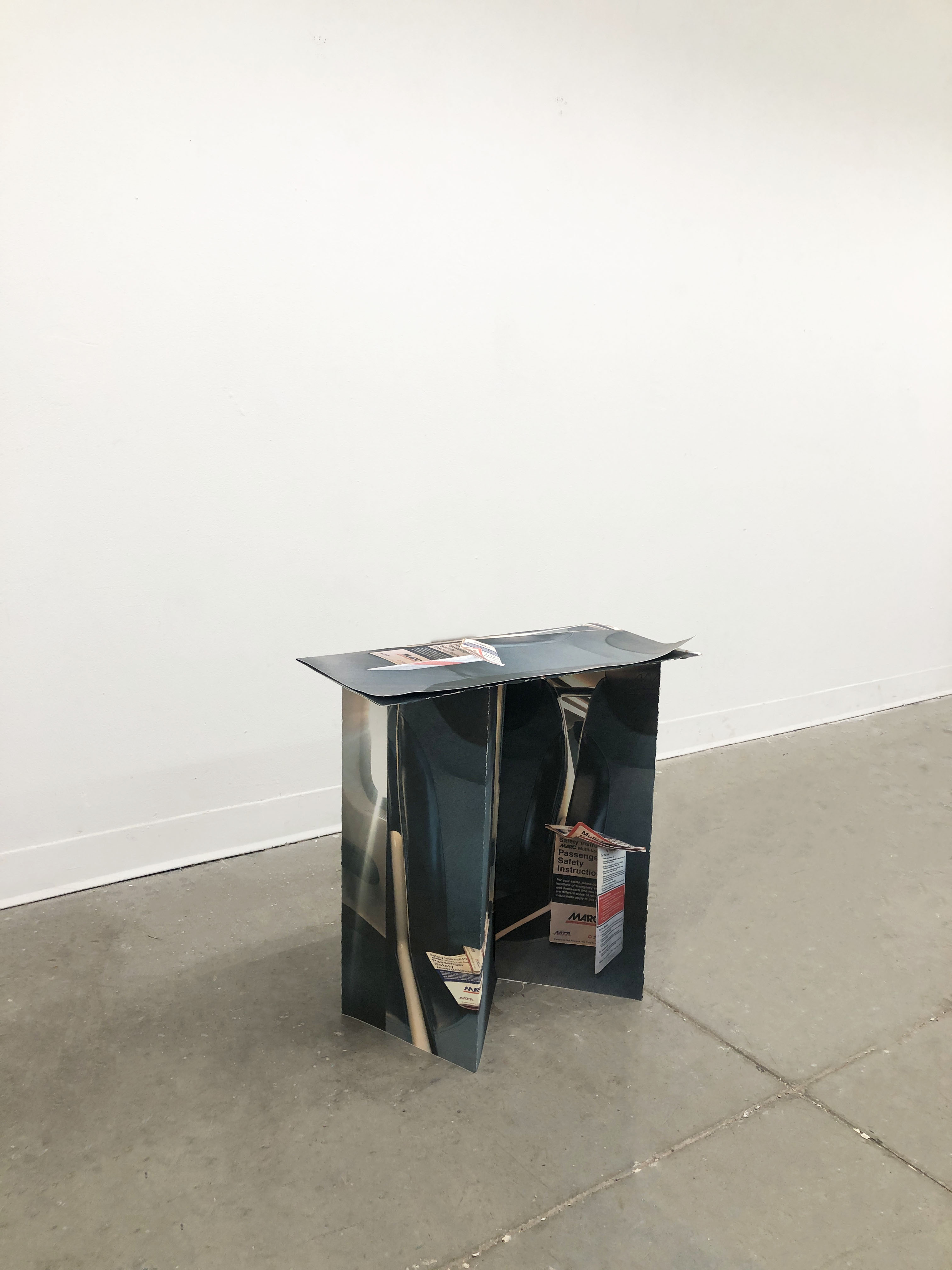Knowing there would be no way to transport them fully outside their moment, their precarious placings, their rickety richness, their wavering walls. There still was the desire to capture, record, transmute, and ferry them into other physicalities. So, I snapped some pics with my phone and then printed them out and attempted to recreate the forms they were depicting. And even though they depicted a recorded and removed moment, they still relied on being make-shift and temporary and could collapse at any time as they could on the train. Was this a way to make the photograph “wholly manifest” and “self-sufficient”? I think the answer is still no, but I’m ok with that. Being haunted by wholeness and self-sufficencies, is how it feels to be a person, a body, which are little words for saying: a temporary being. Why try to push against that? Instead, it is better to sway, teeter and stay “wholly un-manifest”, an unruly object.