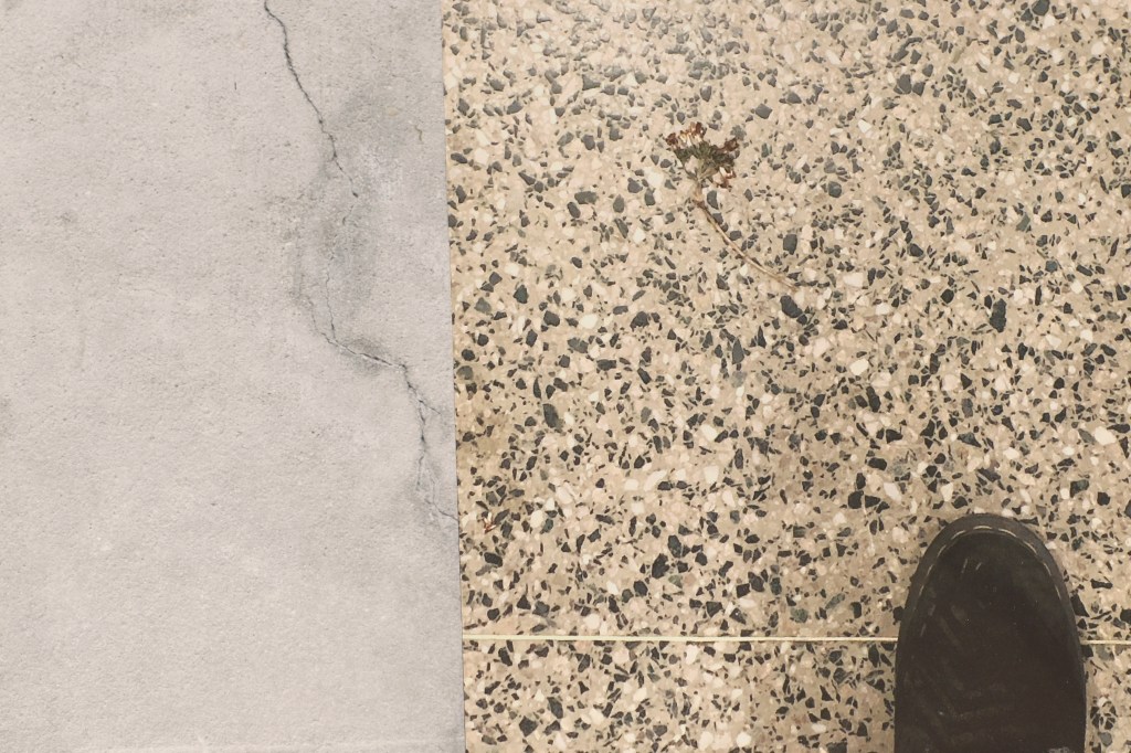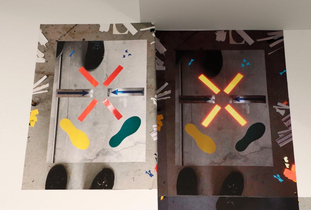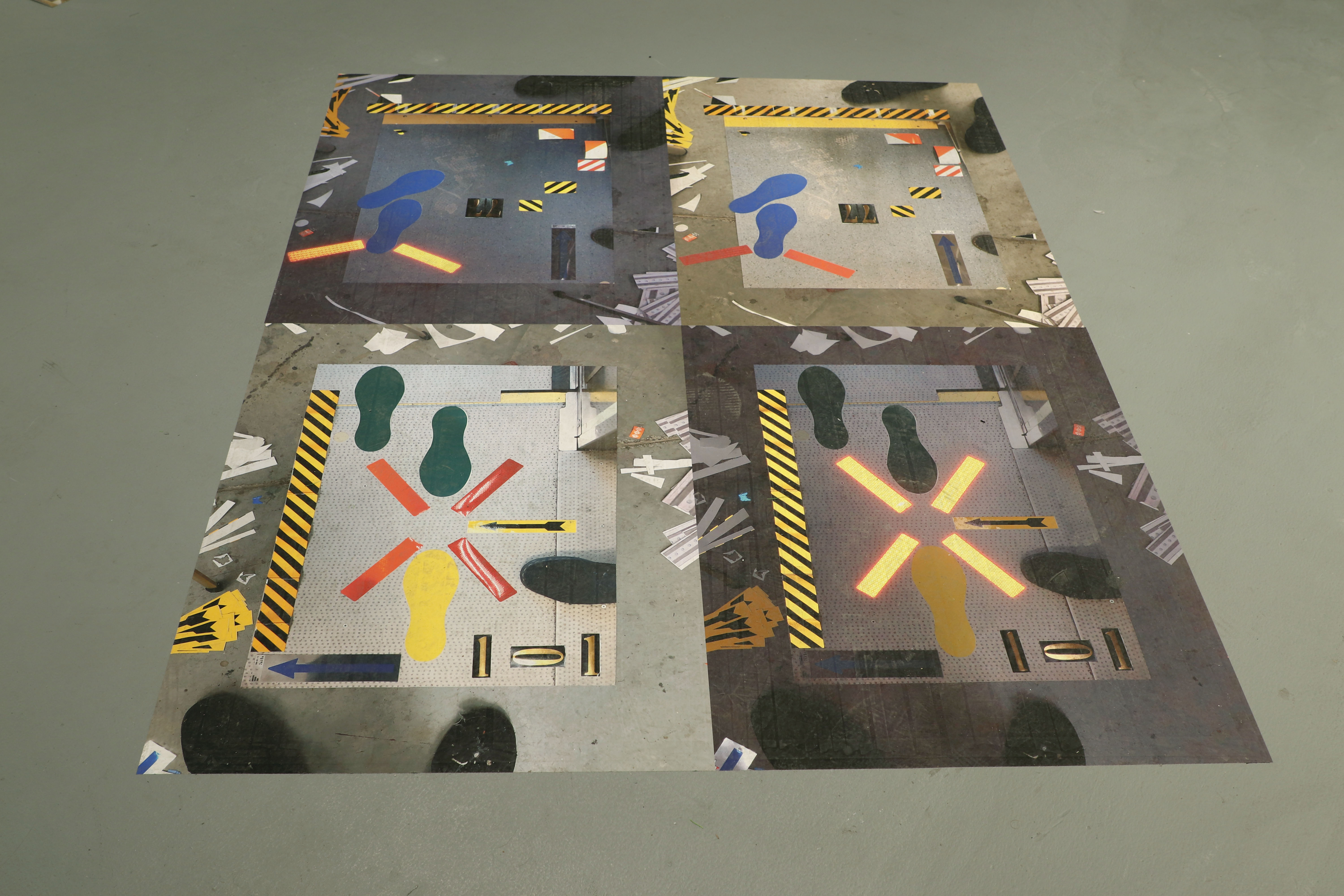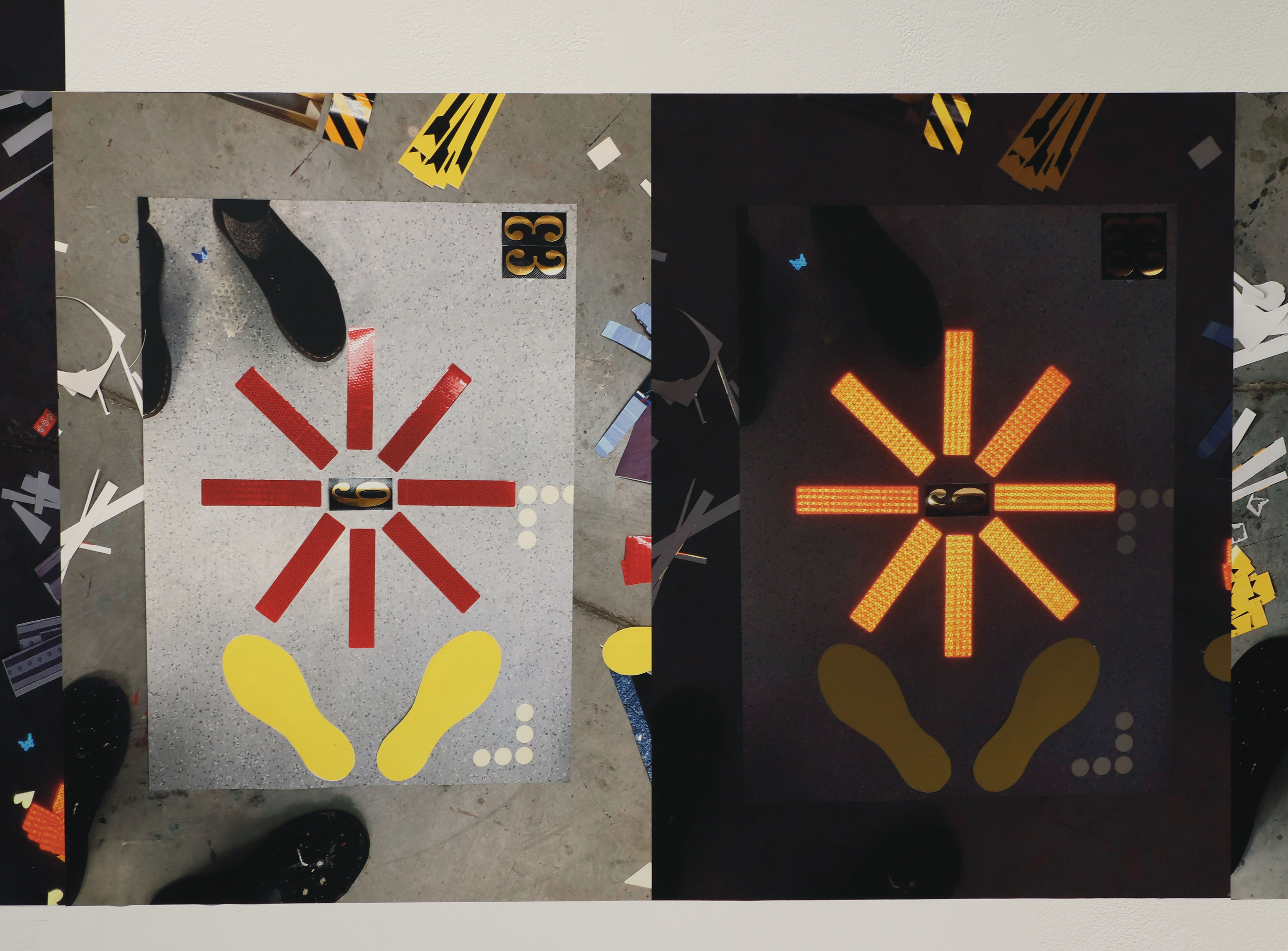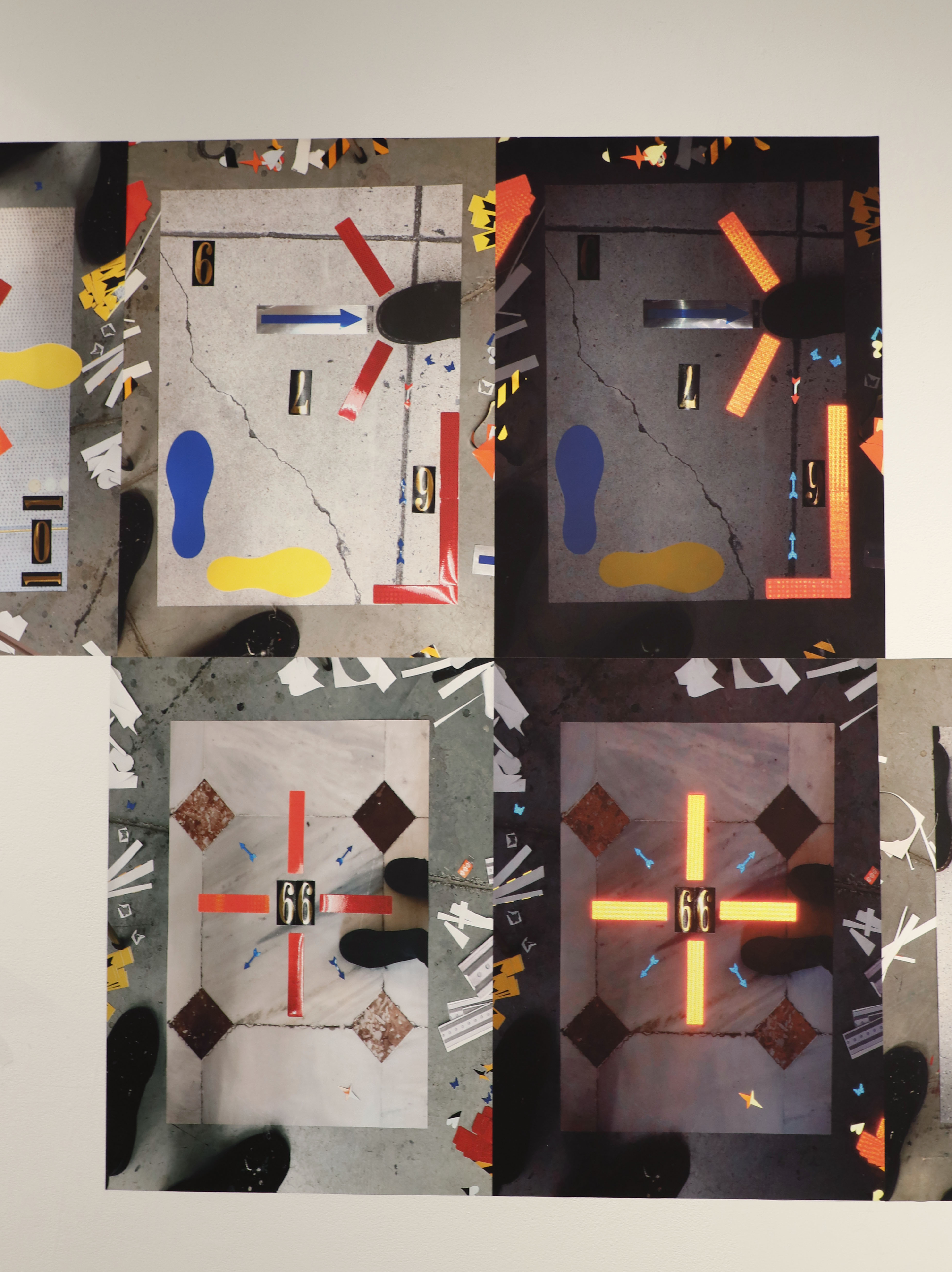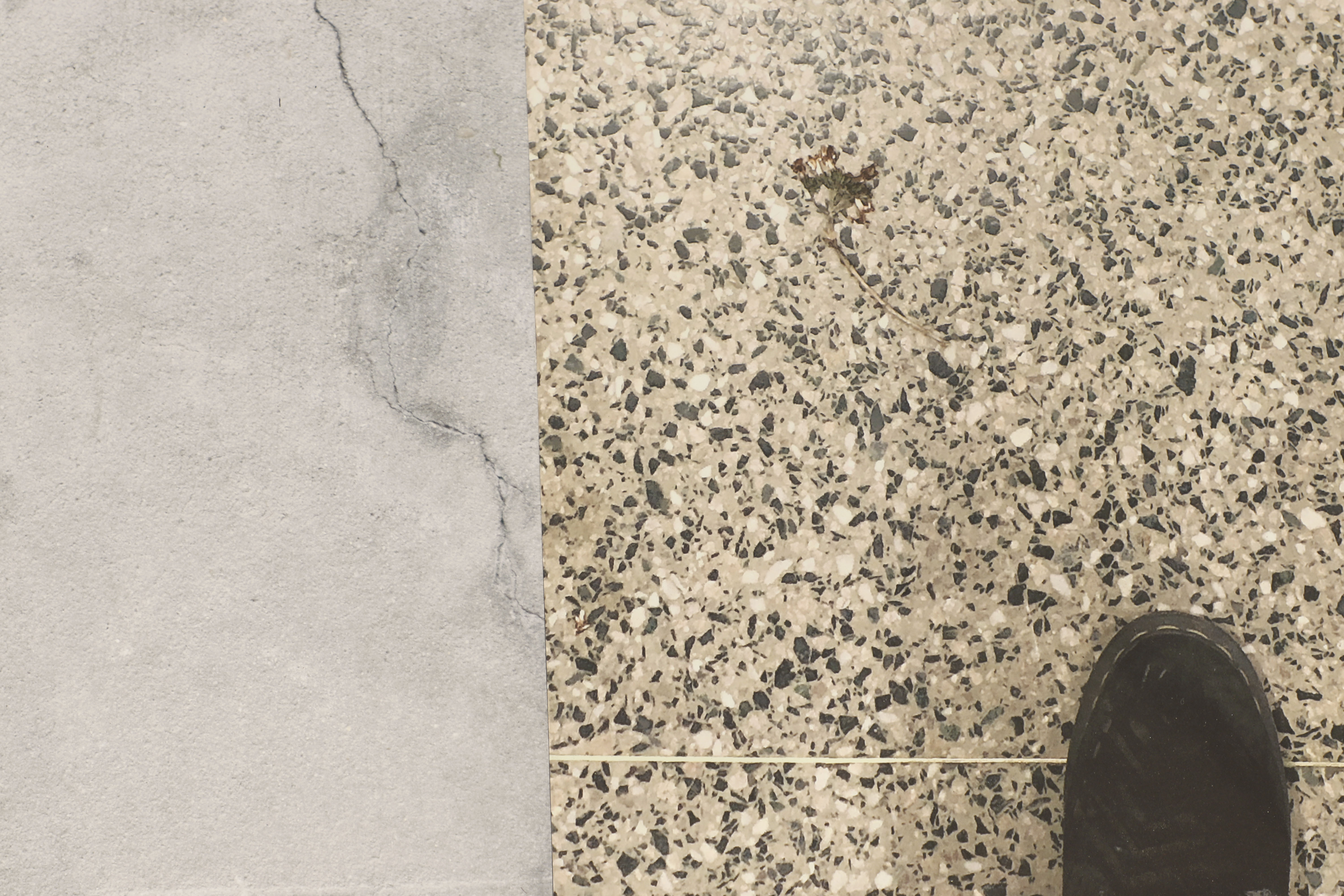 Looking down at my feet as I move on the commute, the specter of Smithson’s walk on the jetty kept coming up and into my mind. Smithson’s spiral way out in the red Salt Lake desert of “America’s Dead Sea” is monumental, literally and figuratively, in the land and in the art cannon, as they say. The commute less so with its repetition and mapped containment and yet it too is a major thing that shapes time and space in contemporary life and being. I tried to take the surface of the photograph’s inherent dialectic as the walking and the looking down at the path of the commute, as one moves and is moved. A path in an endless closed-looped system, recorded through the programmed apparatus of the camera. I began longing for the path and for the photograph to spiral, to twist, or to swim out, into an ever ascending or descending crystalline spiral. A new jetty.