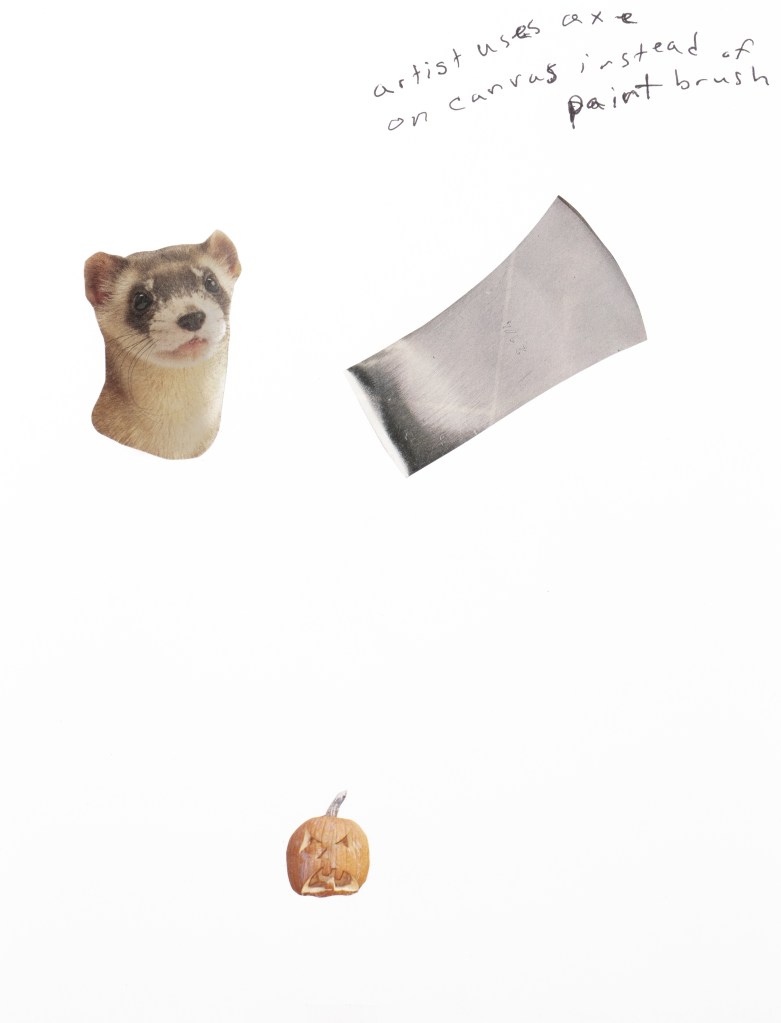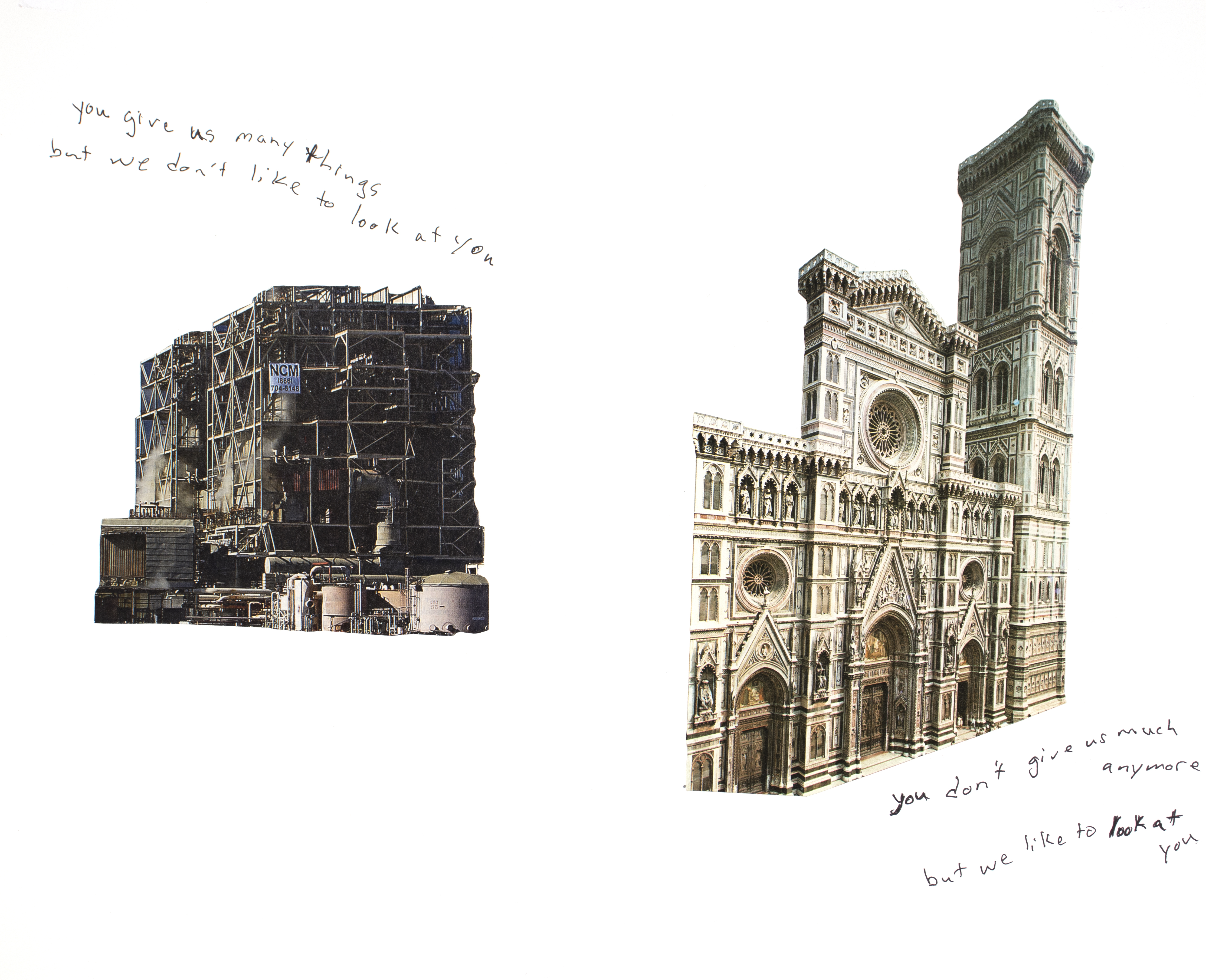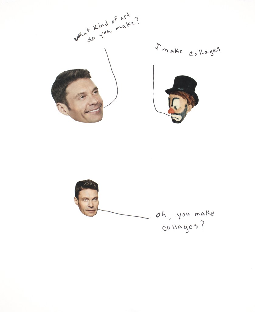 Quick! One Last Poem Before I Go Off, My Rocker…, which I’ve stolen from the beginning of a poem by Frank O’Hara in his collection of Lunch poems, that he wrote on his lunch breaks while working at MoMa, are a continuing series of collages that I make in the “off” hours of the day, or late at night after the day’s obligations are done. They are made quickly with the idea of letting the mind process all the sounds, words, headlines, sightings, anxieties, daydreams, illusions, and confusions of the moment and at the same time trying to play with the underlying structures of how it is we make the world around us in all our descriptions and renderings of it in the mind.